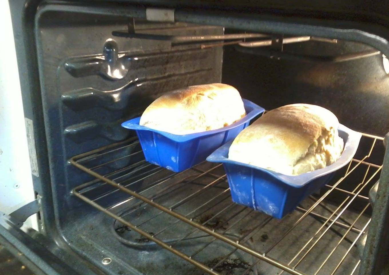 - Punch dough down. Knead for a few minutes, and divide in half. Shape into loaves, and place into two well-oiled 9x5 inch loaf pans. Allow to rise for 30 minutes, or until dough has risen 1 inch above pans.