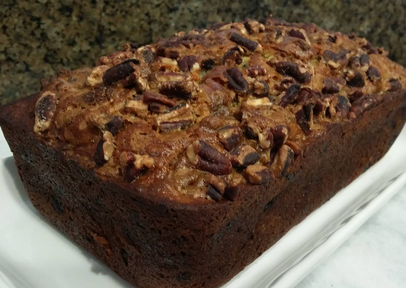 - Pour batter into loaf pan and sprinkle brown sugar over the top to taste. Bake for 60 minutes, or until toothpick inserted in center comes out clean.