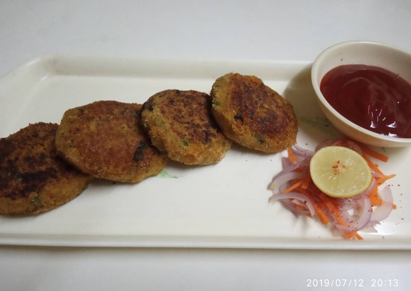- Shallow fry on both sides till golden brown and crispy. Serve hot with tomato sauce and onion, carrot salad.