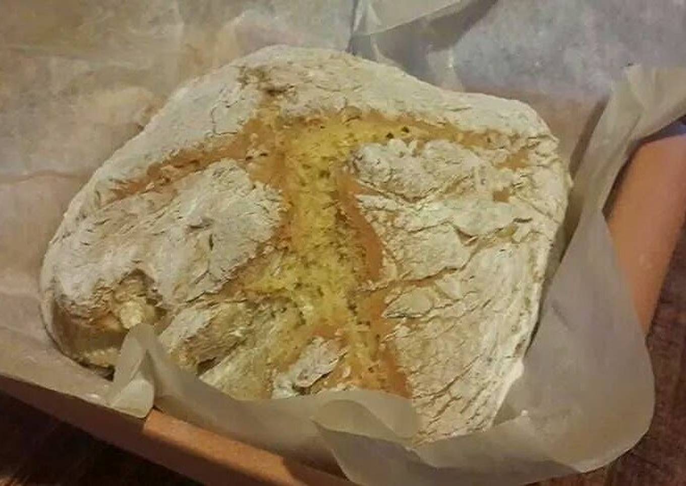 - Put the rounded dough on a baking pan (with a non stick sheet). Draw a cross on it with a knife.