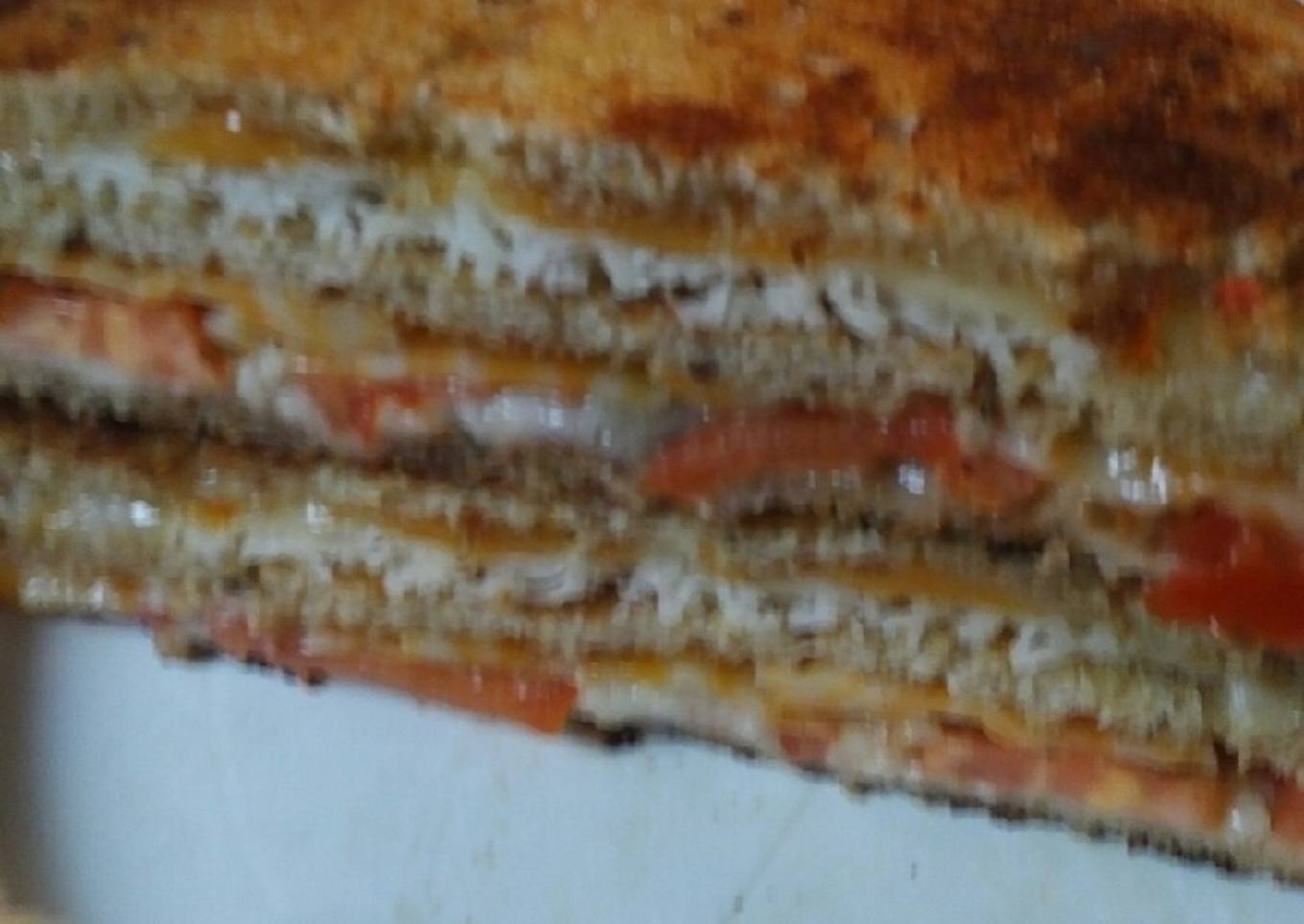 - Turn the stacked sandwich upside down on the hot skillet. Cover for the cheese to melt.