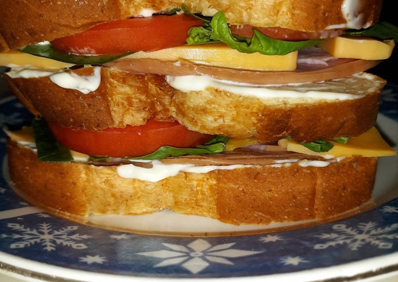 Delicous Triple Decker Ham Sandwich