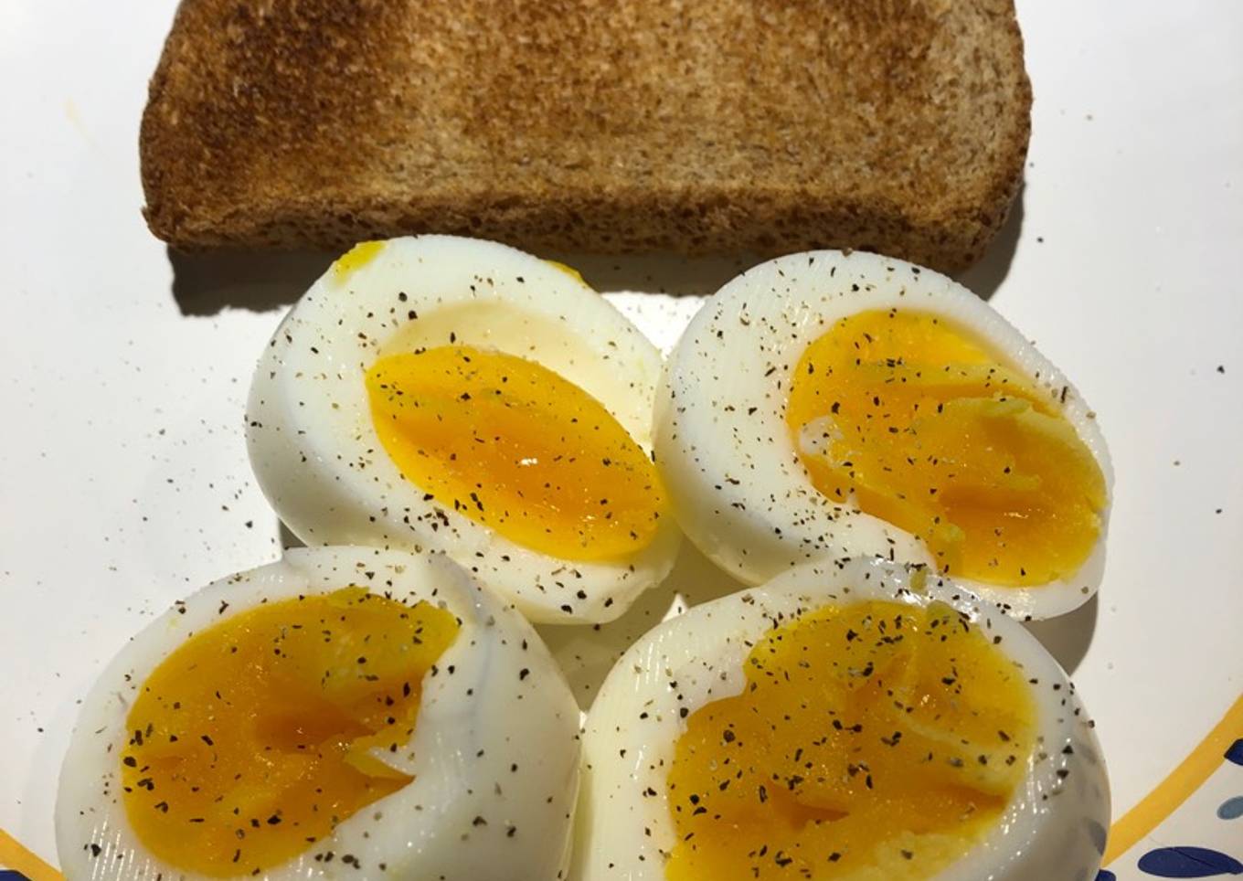 - Carefully peel eggs, serve with toast, add salt and black pepper to your eggs and enjoy 😉!