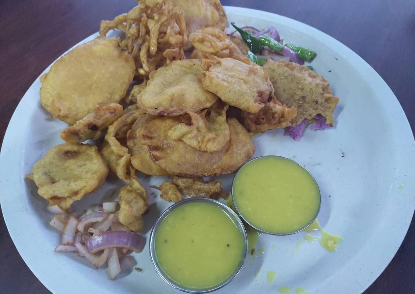 - Enjoy the variety of different pakodas with green chutney and a cup of hot tea.