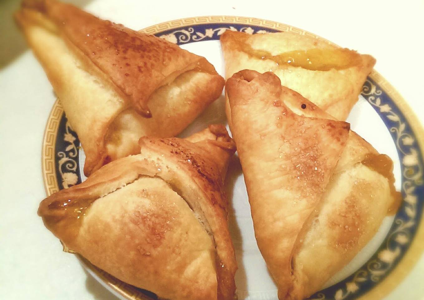 - Put a tablespoon of jam at the center of each triangle