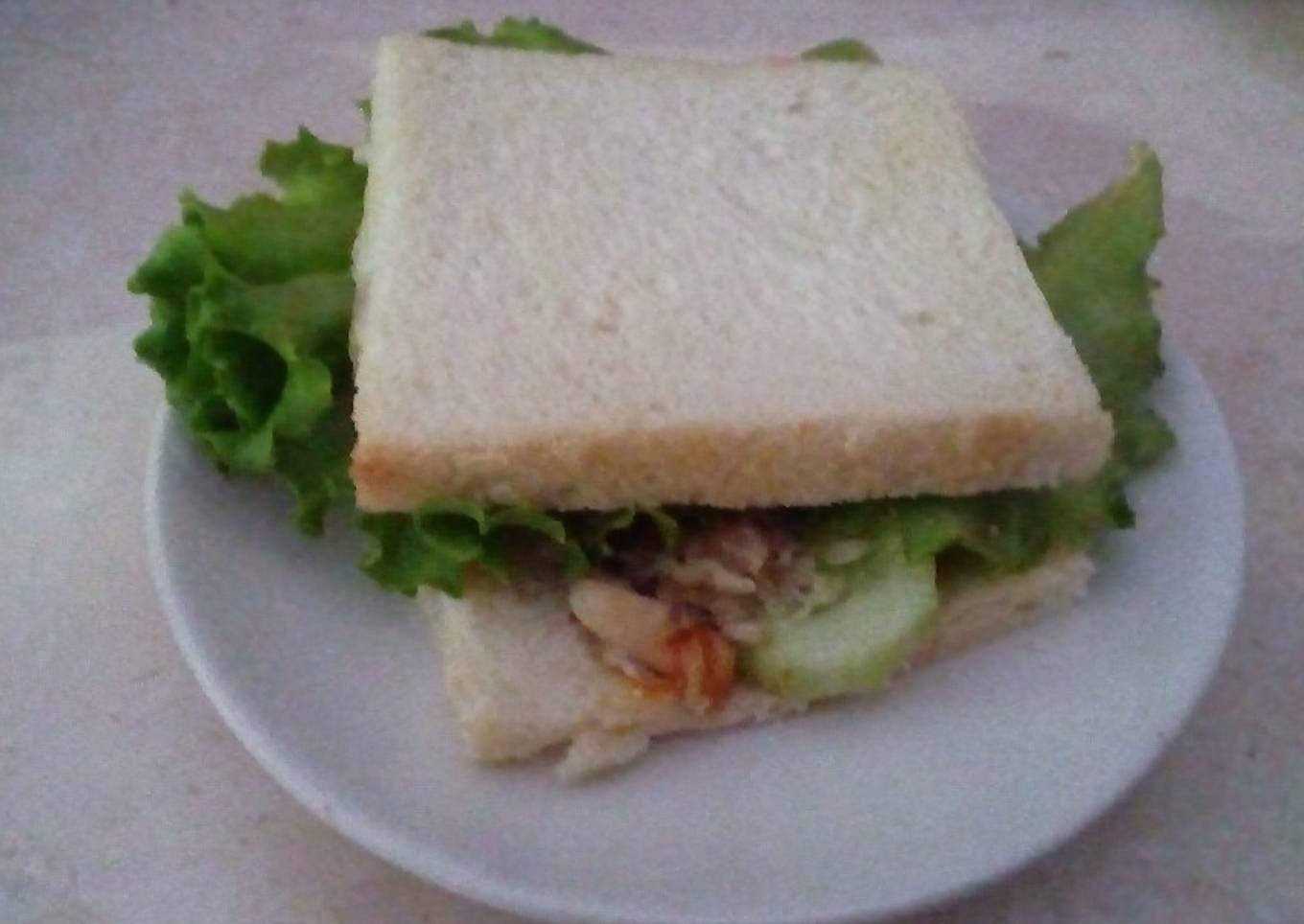 - Layer bread with letucce, cucumbar and leftover chicken or saussages. Then add tomato sauce and mayonaise