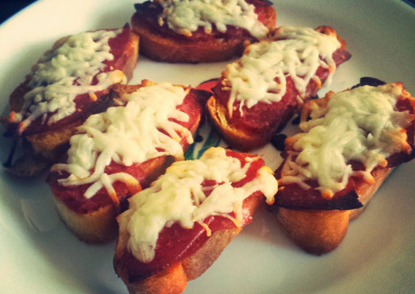 As for the number of servings that can be served to make Pepperoni Pizza Crostini is 1 serving. So make sure this portion is enough to serve for yourself and your beloved family.